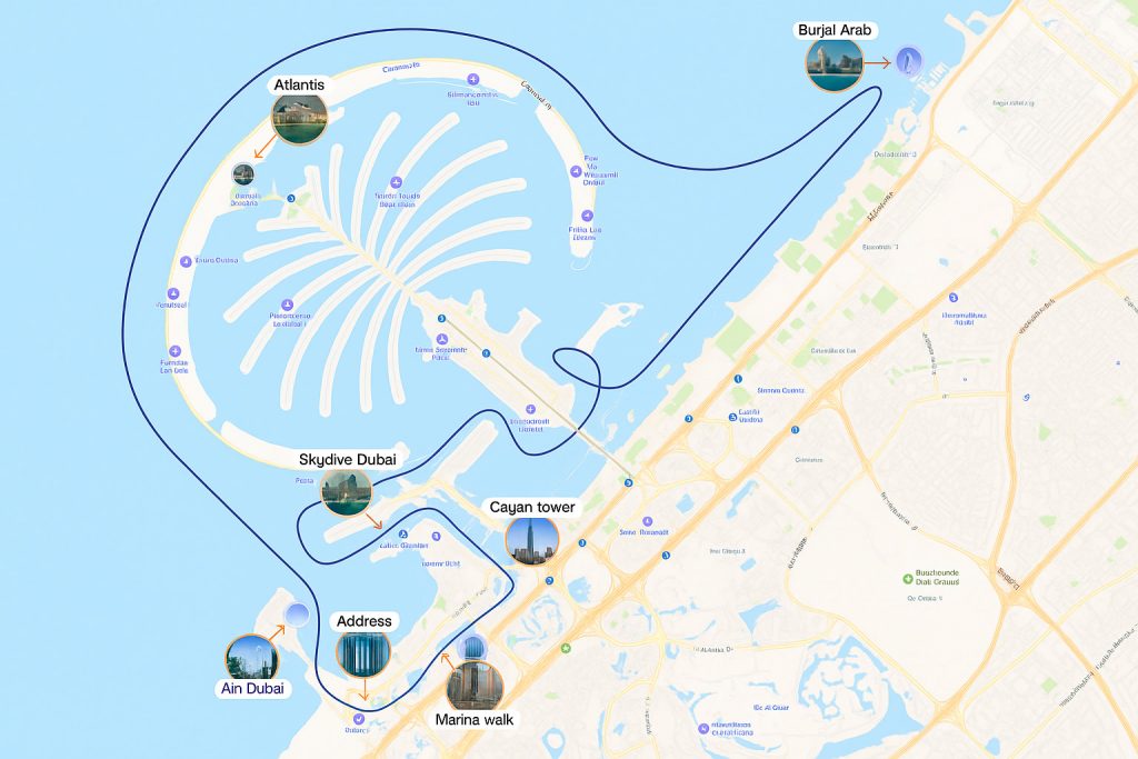 Прогулка вокруг знаменитого искусственного острова Пальма Джумейра с роскошными отелями и виллами по пути. Вид на фасад Atlantis The Palm со стороны воды — один из самых зрелищных. Идеально для ярких фото и атмосферного отдыха.